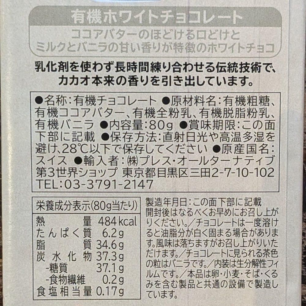 第3世界ショップ / フェアトレード ホワイトチョコレート 80g
