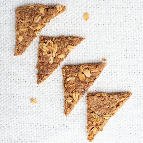 (原材料:全粒粉、玄米、オートミール、植物油、黒糖、きな粉、天然酵母種、国産小麦粉、塩、黒米、キビ、アワ、ヒエ)